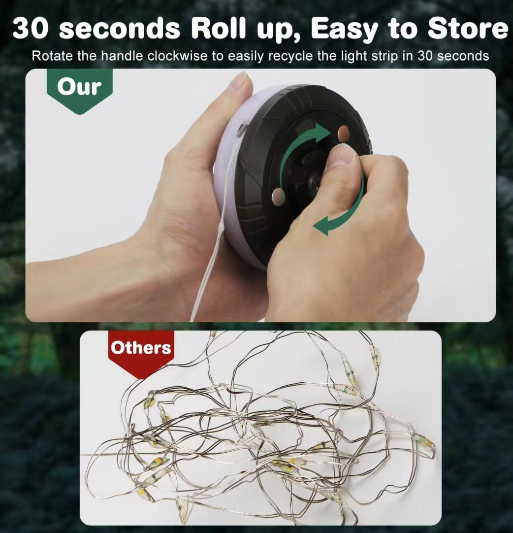 Vores 10-meter LED-strimmellys er designet til ultimativ bekvemmelighed med en tilbagetrækkelig funktion, der giver dig mulighed for at vikle dem op på kun 30 sekunder ved at dreje med uret. Dette sparer dig ikke kun tid, men holder også dine LED'er sikre og fri for sammenfiltring, hvilket gør opsætning og opbevaring til en leg.