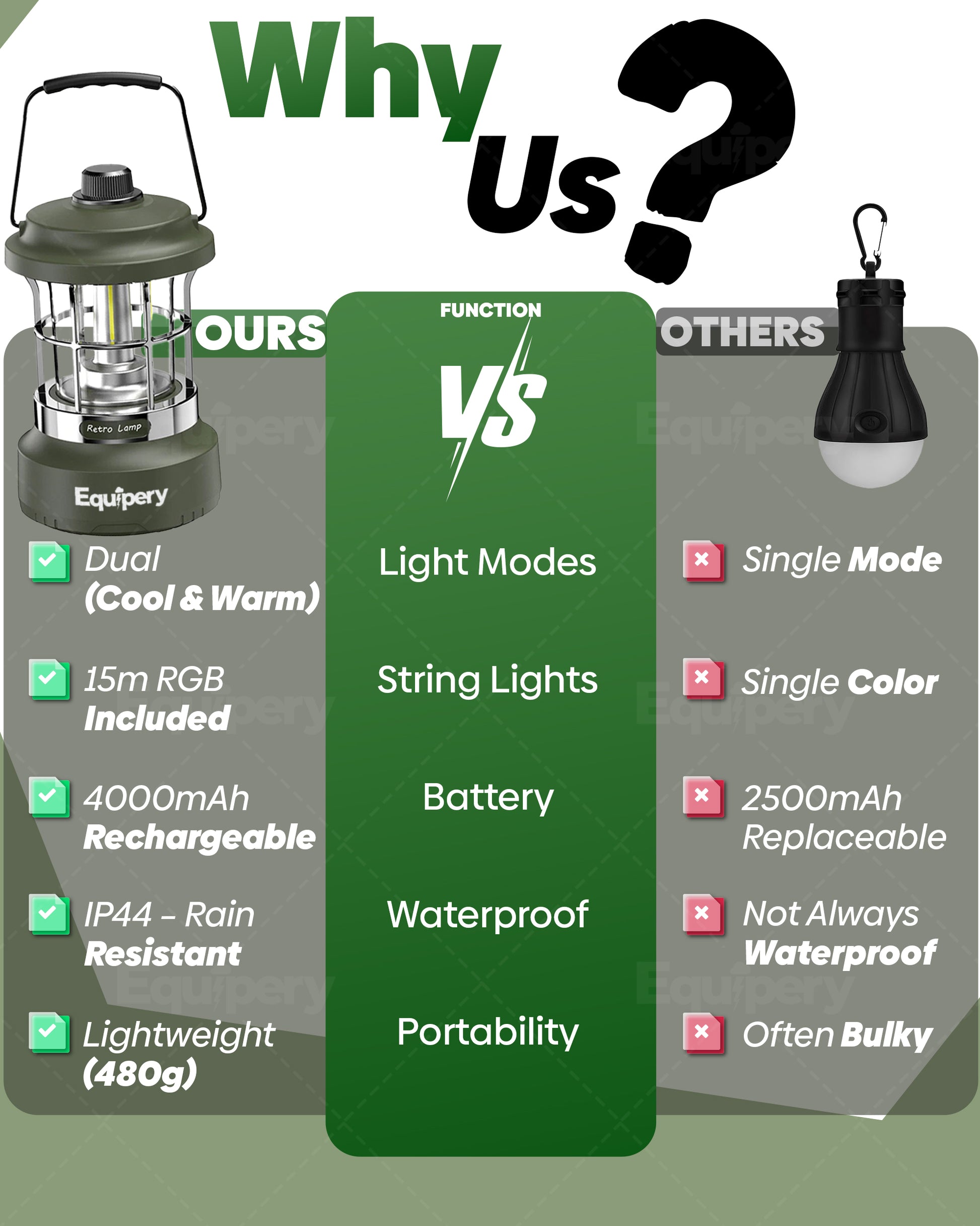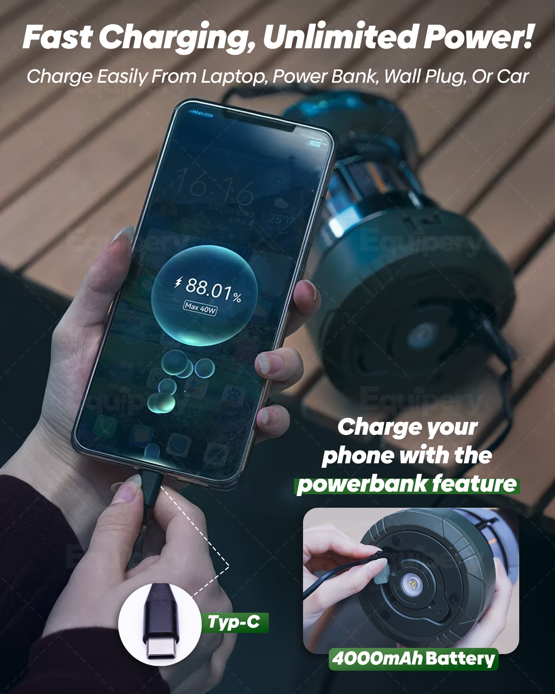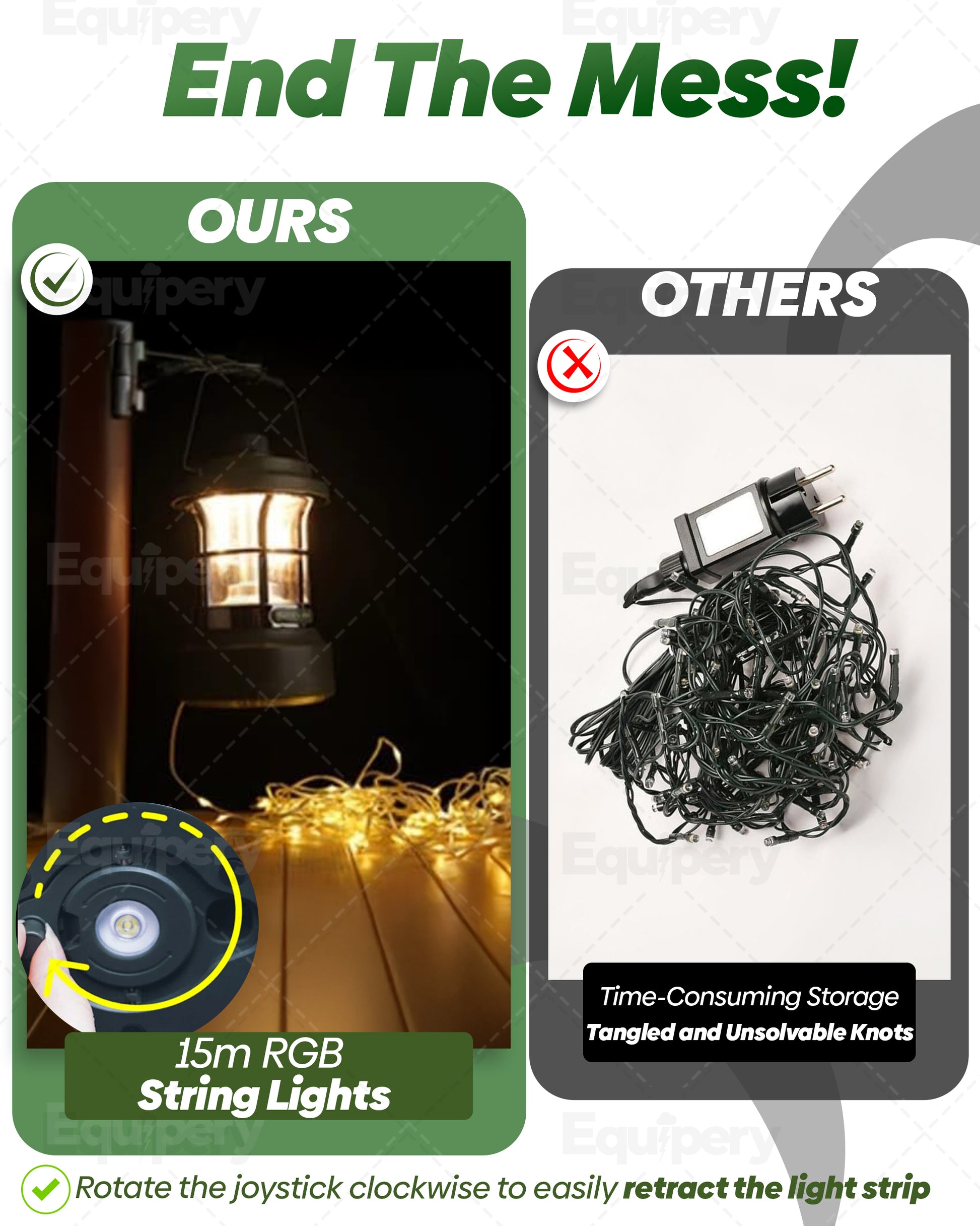 🏕️ 4-in-1: Lantern, String Light, Powerbank, Flashlight